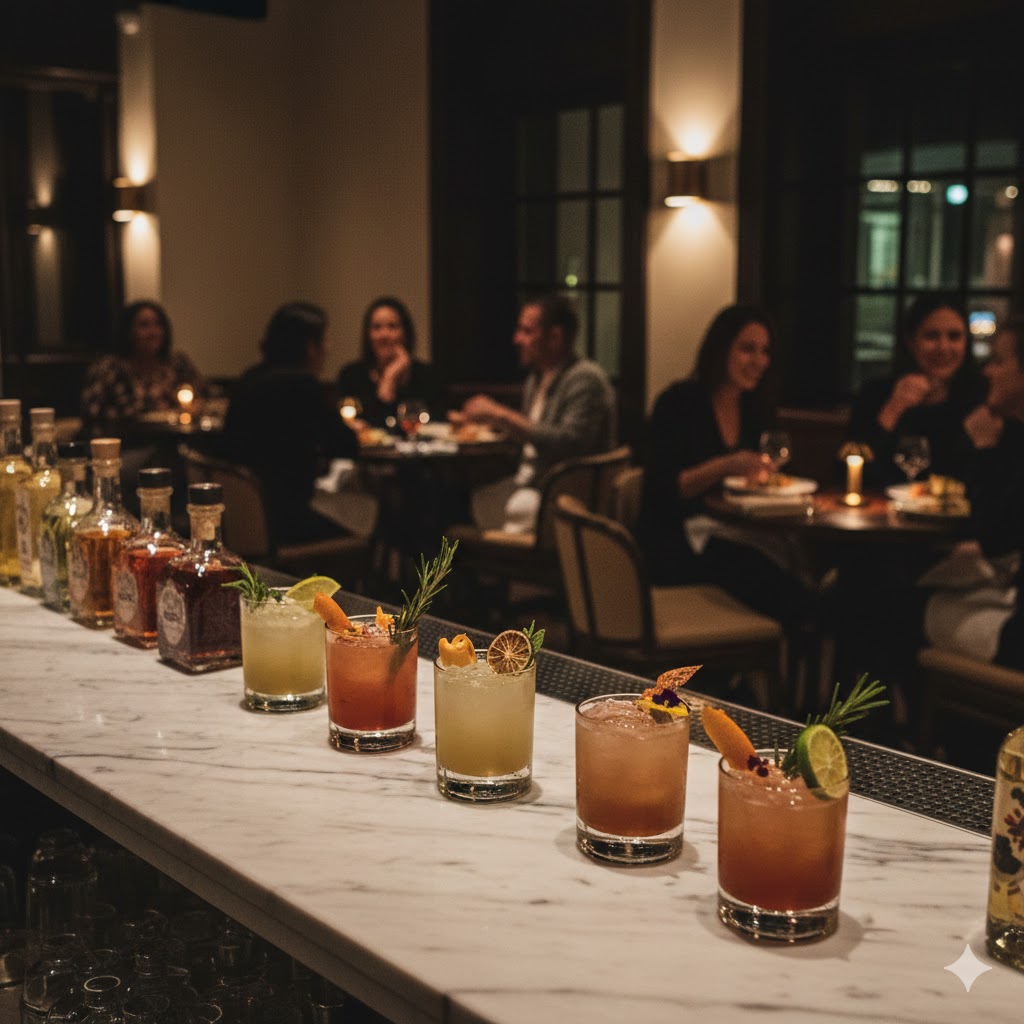 La taquería premium redefine el concepto, moviéndolo de la “comida rápida” a una experiencia de cena completa y sofisticada. Aquí, el taco es el centro de un menú diseñado para maridar con una excelente mixología de autor, barras de mezcales artesanales o vinos. El ambiente es crucial: iluminación tenue, diseño de interiores cuidado, música curada (quizás un DJ) y mobiliario cómodo que invita a la sobremesa prolongada. El servicio es de restaurante, los ingredientes son de primera calidad (Rib-Eye, camarón U15) y los precios reflejan el entorno exclusivo y la experiencia completa de entretenimiento y gastronomía nocturna.
