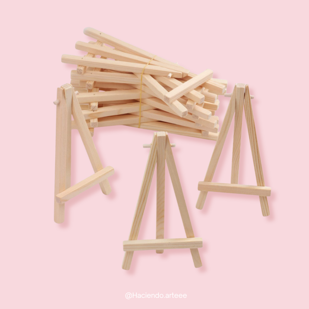 Set creativo con 2 lienzos (12x12) y 2 caballetes de madera. Perfecto para decorar espacios pequeños con tu talento.