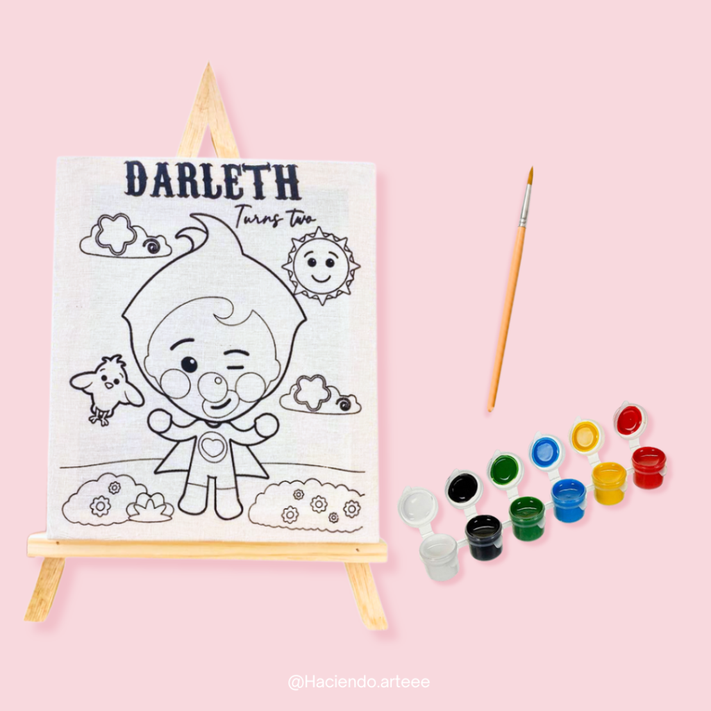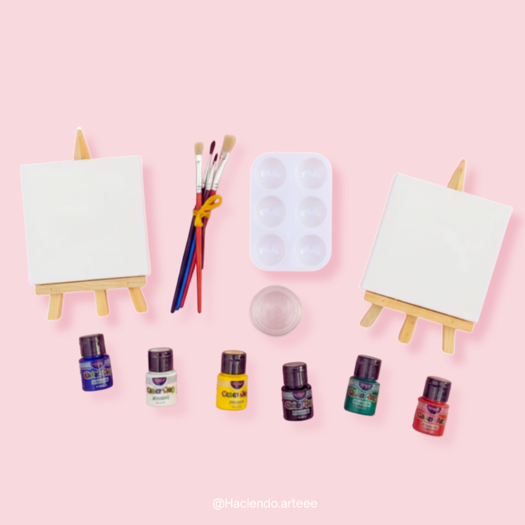 Un detalle lleno de color. Incluye lienzo mini con dibujo, caballete y pinturas. ¡Perfecto para regalar!