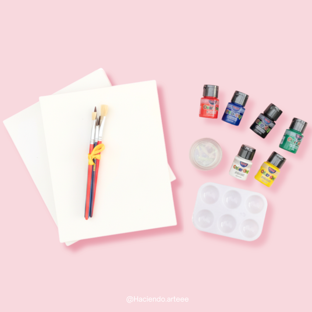 Espacio extra para tu inspiración. Lienzo grande (30x22), caballete, tira de pinturas y pincel incluidos.