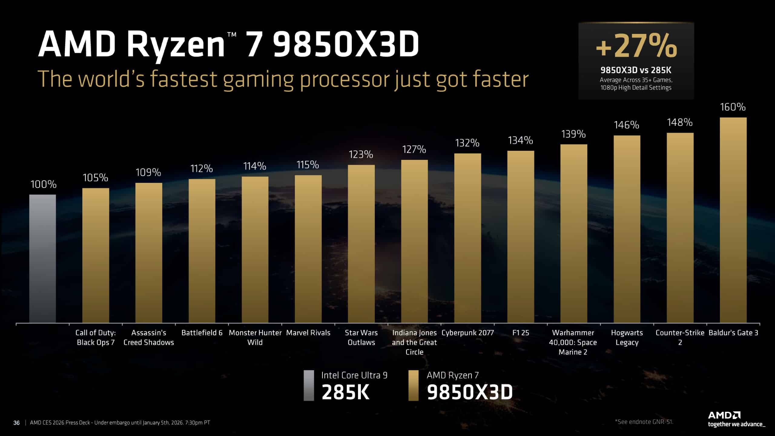 Si eres de los que busca el máximo rendimiento para jugar, esta es la noticia de la semana. Tras su presentación en la CES hace unos días, se ha filtrado que el esperado procesador AMD Ryzen 7 9850X3D se pondrá a la venta oficialmente el 29 de enero de 2026.